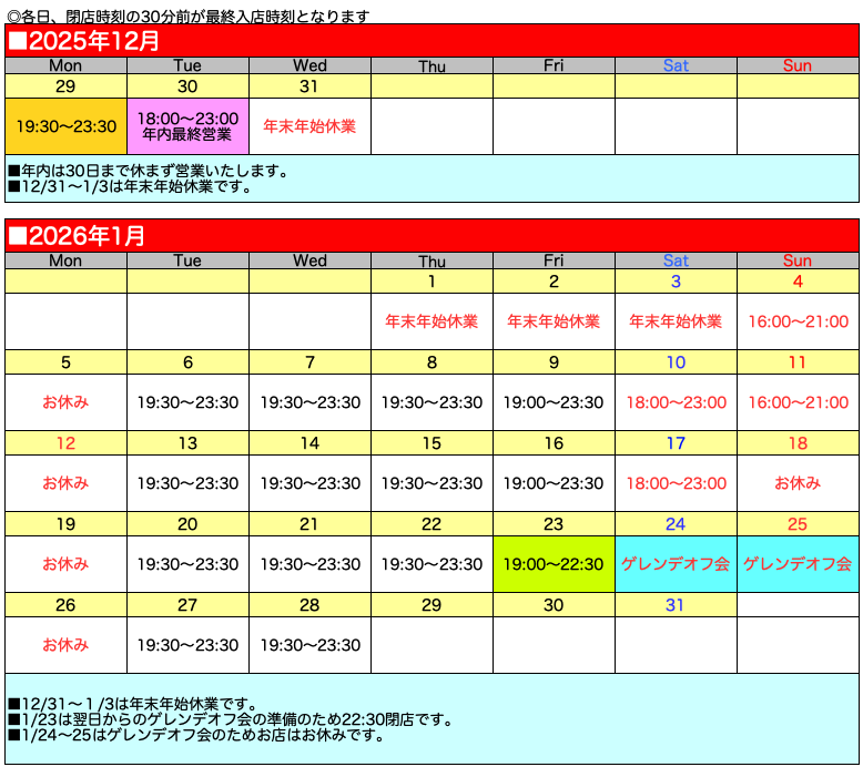 営業予定は変更になる場合もございます。